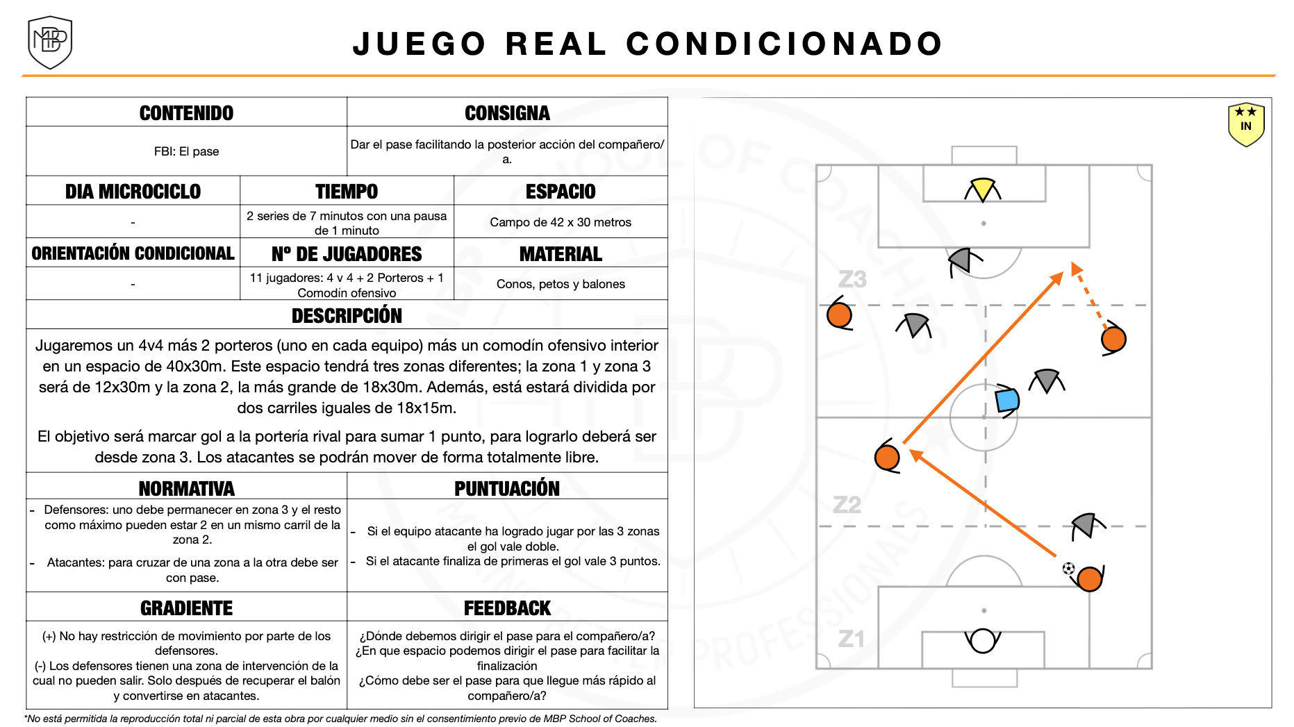 Sin embargo, cuando el objetivo es profundizar en consignas más coordinativas, se priorizan tareas que fomenten la repetición del movimiento, como circuitos o ejercicios analíticos. Estas ED ayudan a los jugadores a perfeccionar la técnica del pase mediante la práctica constante y la corrección de errores en un entorno controlado.