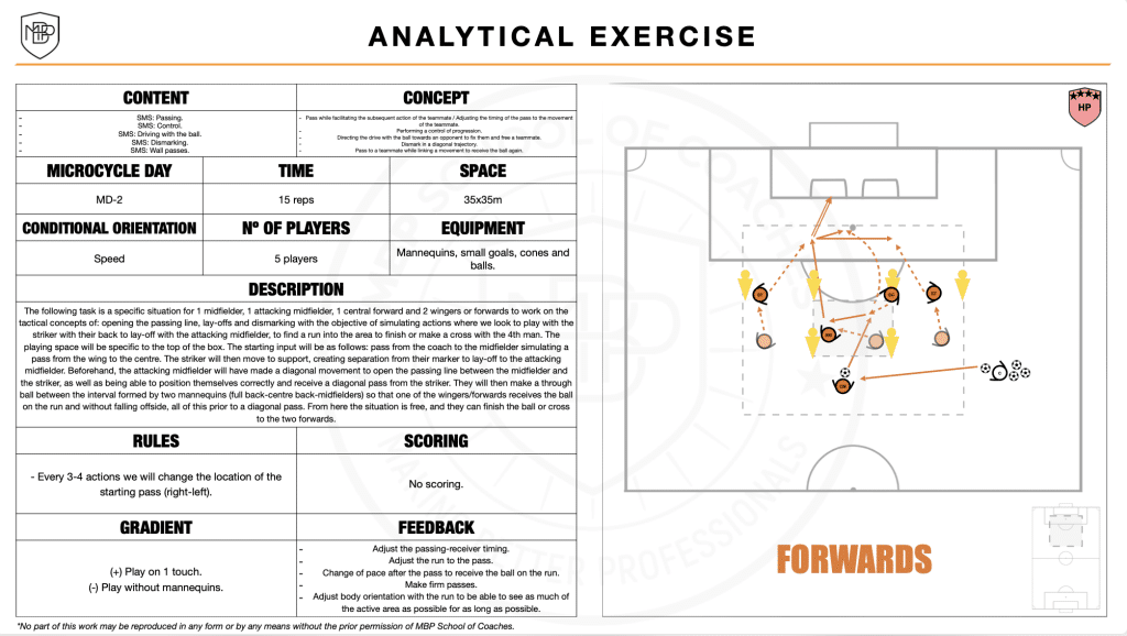 Situation 3. Finally, it will be useful in analytical exercises and pattern work, as they will be tasks where the aim is for players to quickly internalise playing concepts, both at a coordination level and in terms of concepts of the game, such as actions from the match plan. Below, we show an example of each type of didactic strategy:Â