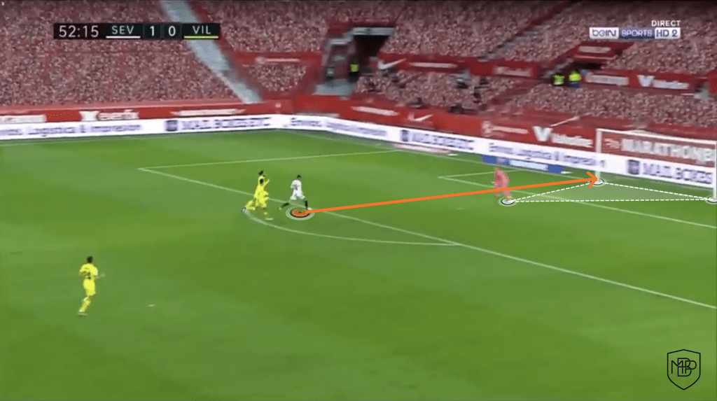 Lastly, in the next fundamental it is where the Sevilla FC player has had more significative improvement.  As the Sevillian fans may recall, the player missed a clear chance in the European Super cup in front of Manuel Neuer which could have changed the outcome of the match.