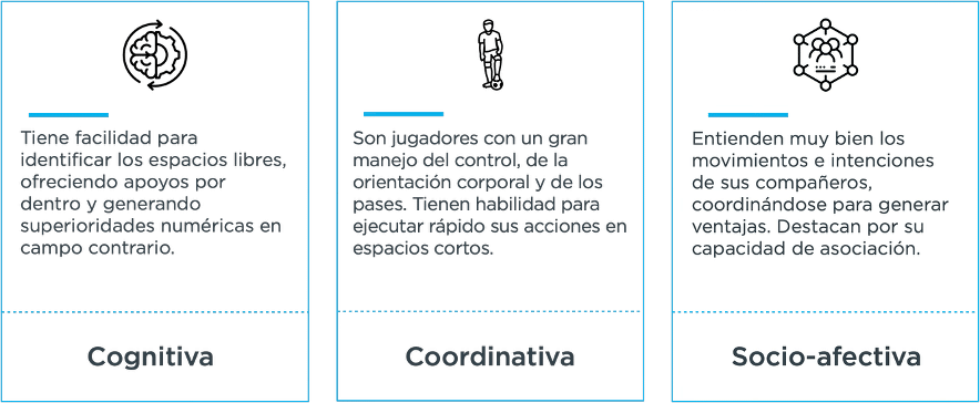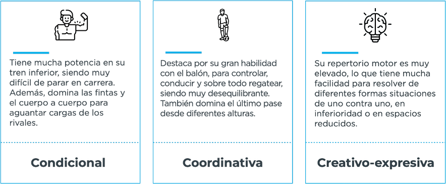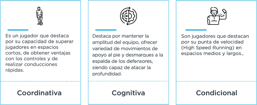 Son jugadores desequilibrantes en los carriles laterales por su potencia y habilidad técnica en situaciones de uno contra uno y en espacios reducidos. Para ello, destacan por las siguientes estructuras: