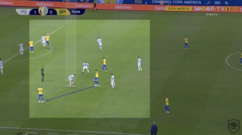 Da mesma forma, também vale destacar a grande capacidade de roubar a bola do jogador argentino, não só em ações de disputas 1×1, mas também por antecipação e interceptação.